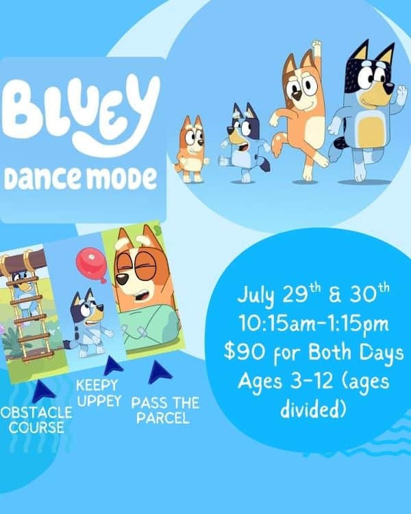 Step into a world of whimsy and wonder at the Bluey Dance Camp, Budding dancers explore the magic of rhythm and expression set to bluey music, with bluey costuming in a world of Bluey everything! Dance mode camp is a delightful blend of dance instruction and storytelling, where little ones can embody their favorite characters and embark on imaginative adventures through movement. From twirls and spins to laughter-filled routines, the Bluey Dance Camp sparks creativity and fosters friendships in a world where every step is a celebration of childhood wonder.