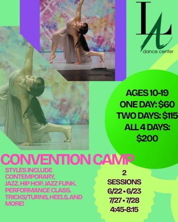 Styles include contemporary, jazz, funk, hip hop, performance class, tricks/turns, heels, and more!