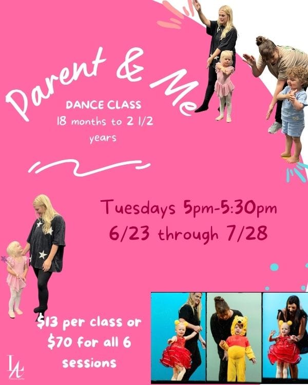 Our Parent & Me Dance Class (ages 18 months–2.5 years) is a fun, engaging introduction to movement and learning. Little ones build important skills like following directions, staying in their own space, and participating in a group setting. Each class includes rhythm activities, basic dance steps, beginner tumbling, balance, and jumping. It’s the perfect mix of bonding time and early skill-building in a playful environment.